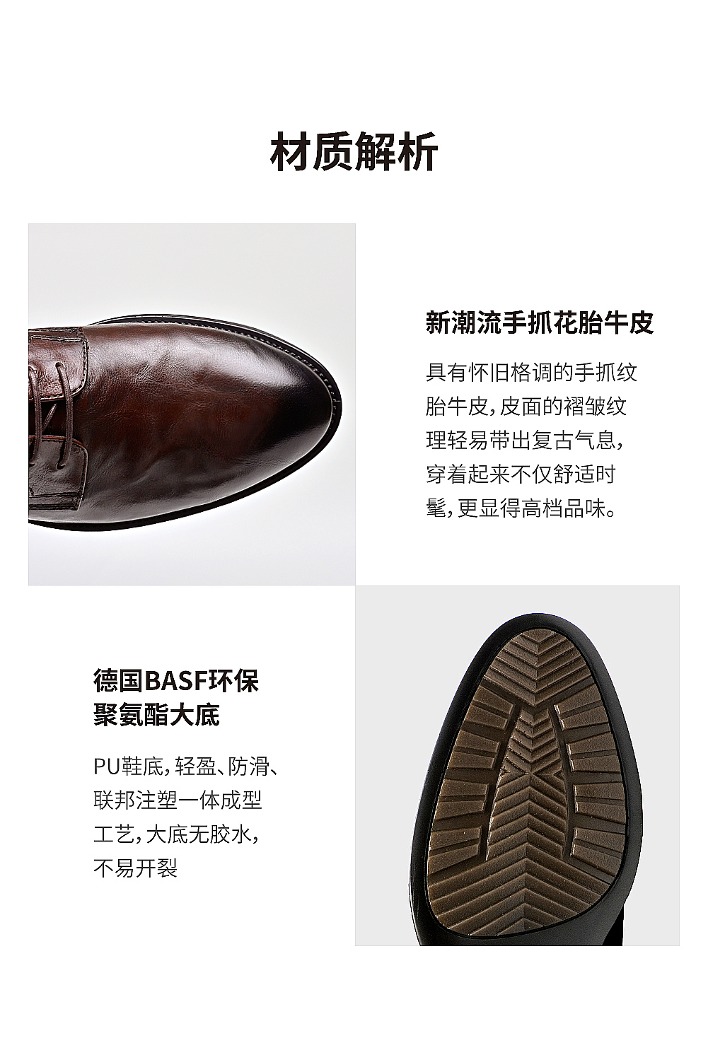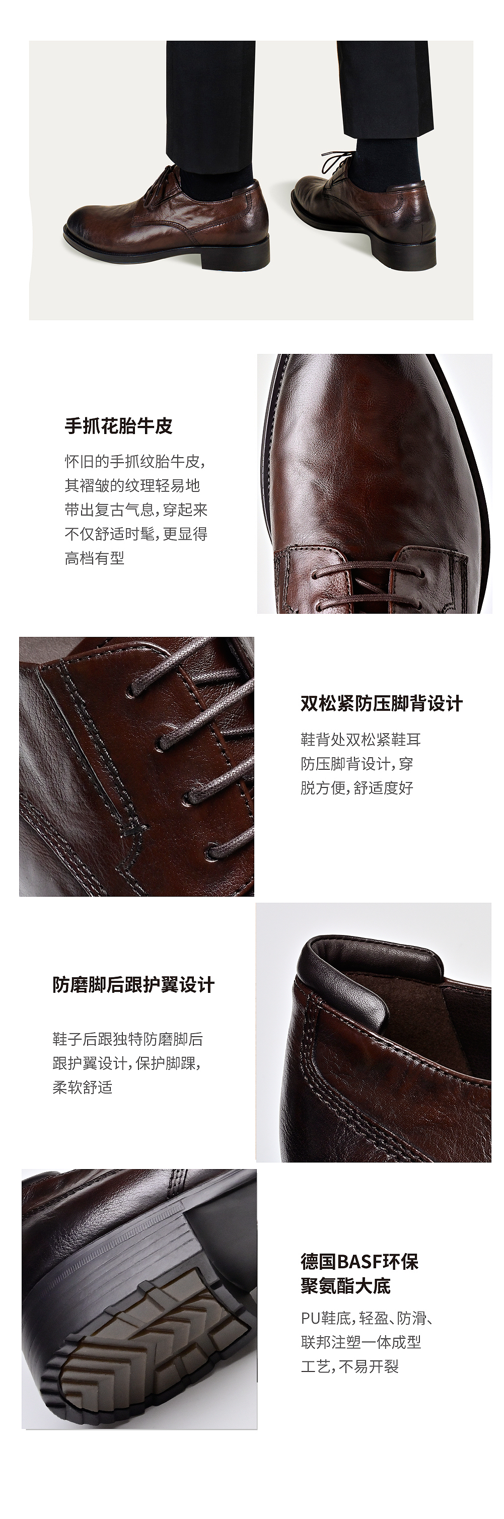經典手抓花(huā)正裝商務系帶男(nán)皮鞋M65707