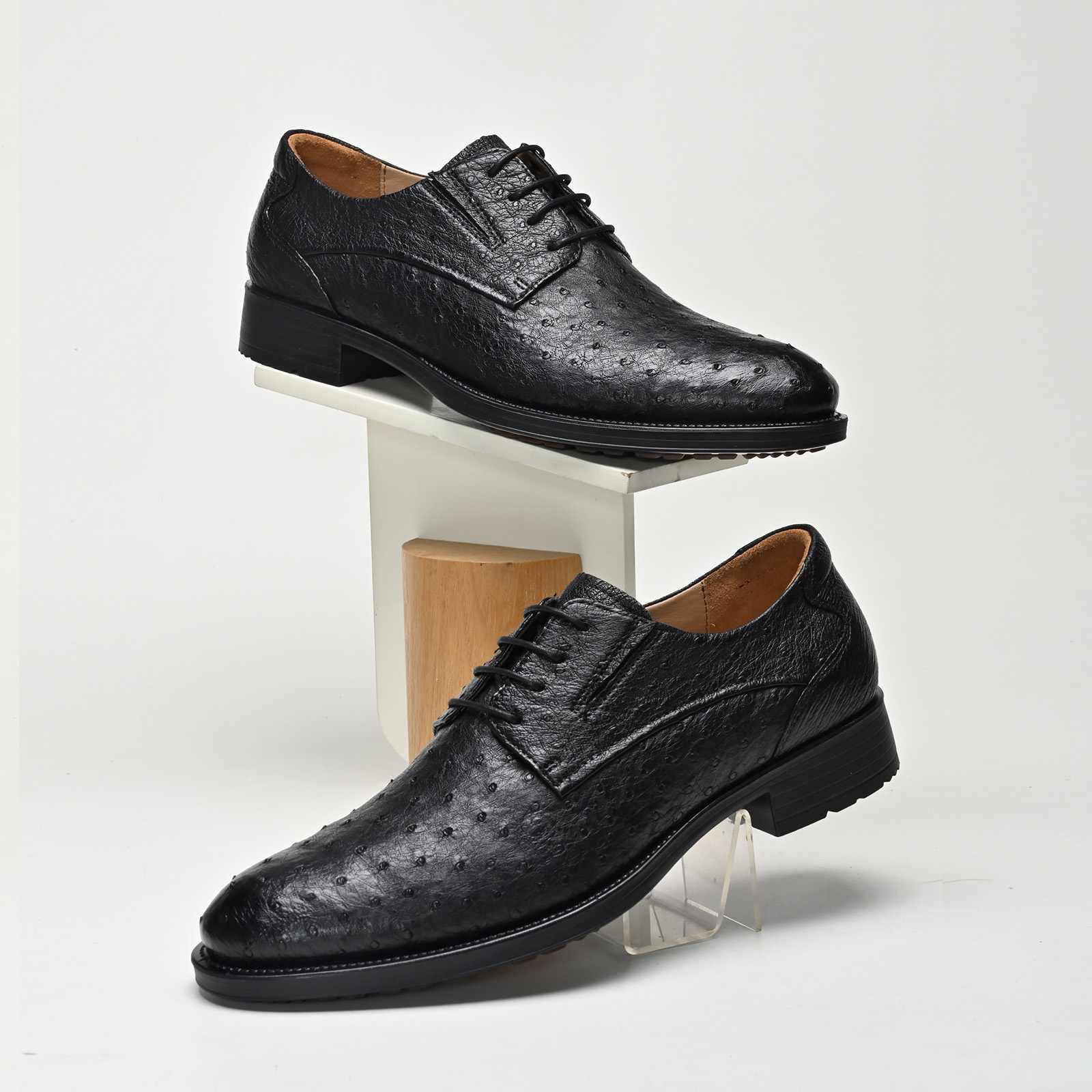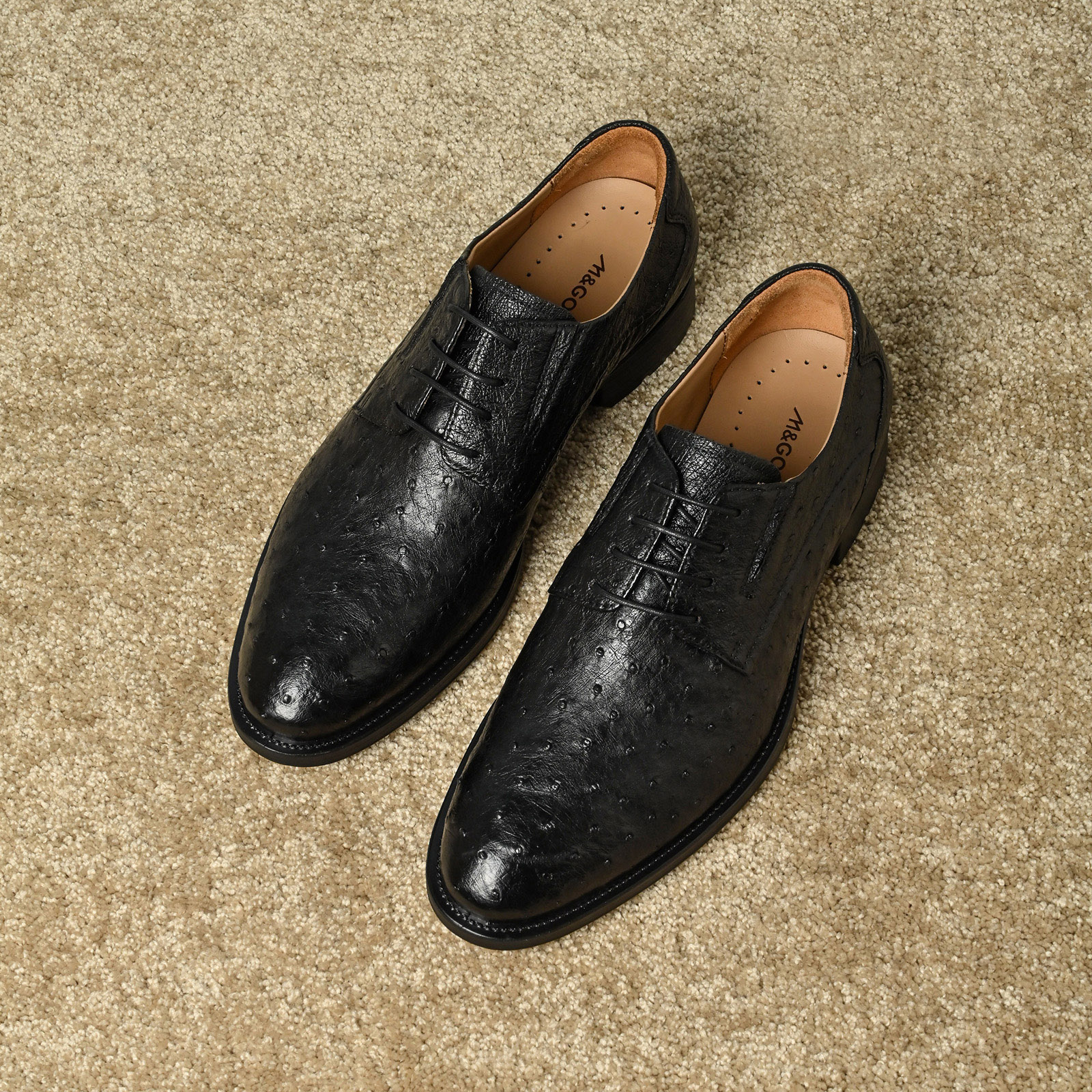 尊貴經典駝鳥皮英倫風(fēng)複古德比正裝男(nán)鞋M82302真皮男(nán)士系帶圓頭