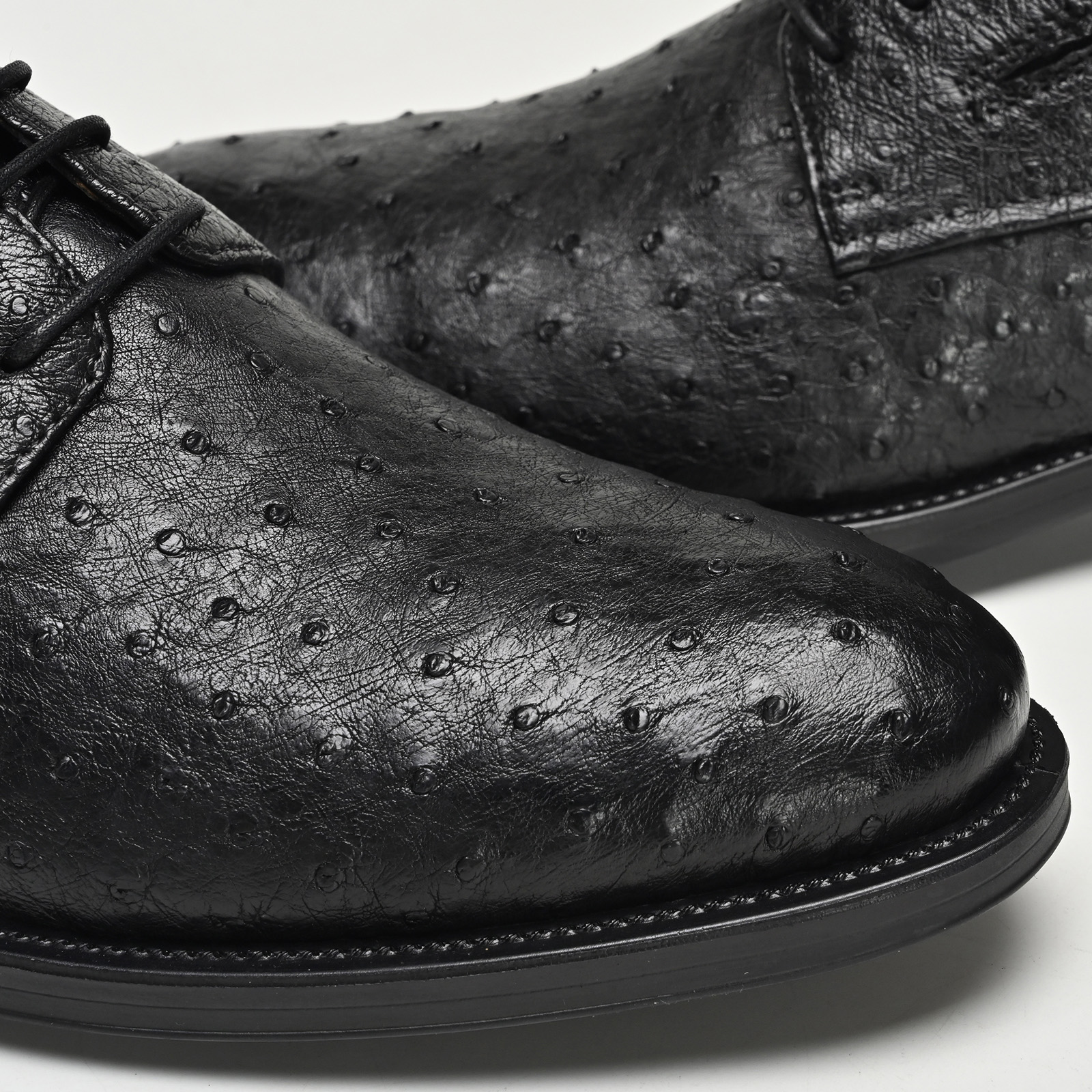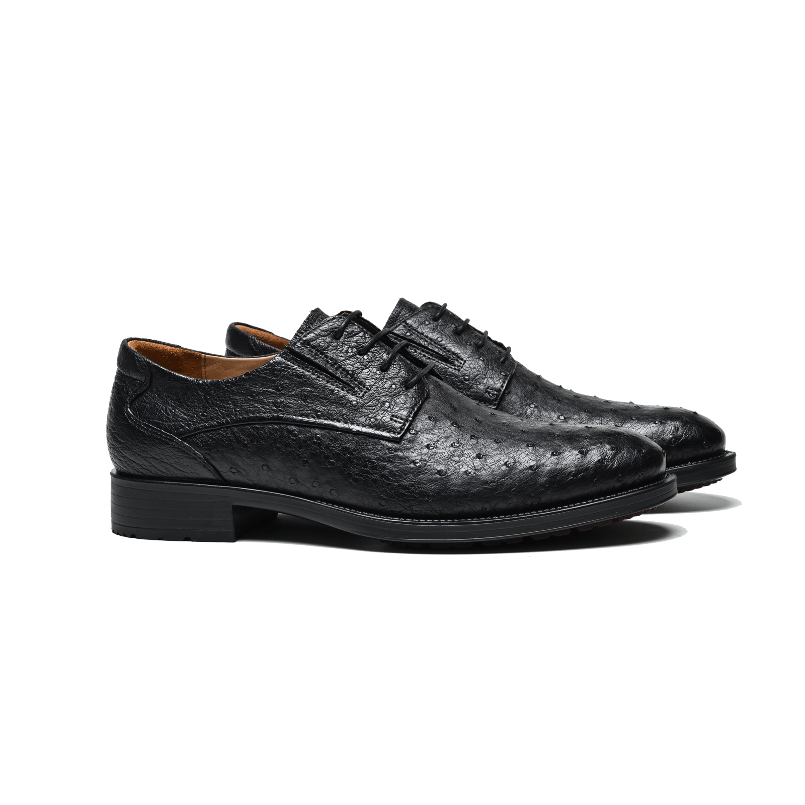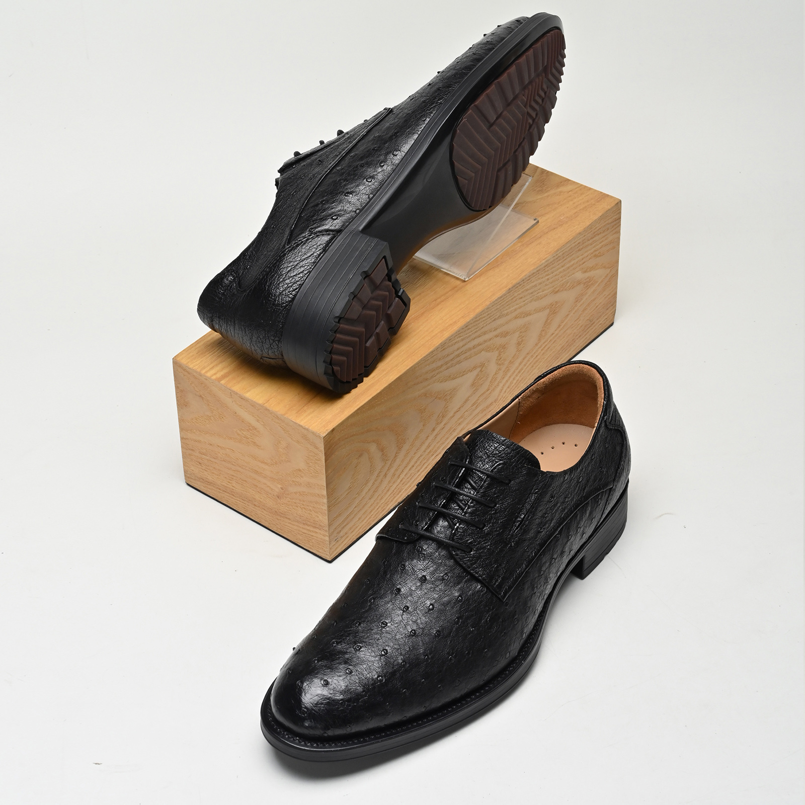 尊貴經典駝鳥皮英倫風(fēng)複古德比正裝男(nán)鞋M82305男(nán)士真皮系帶黑(hēi)色