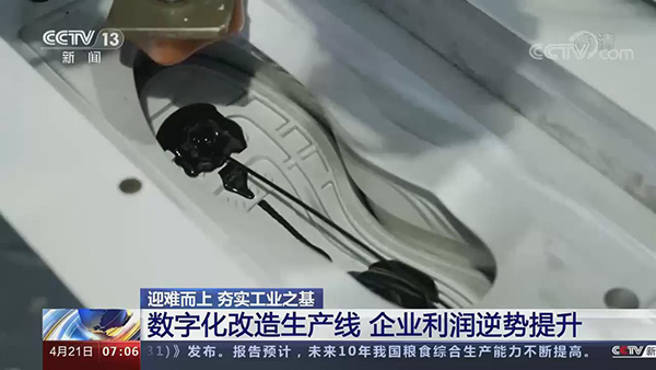 “今年(nián)一(yī)季度,雖然受疫情和(hé)外(wài)部因素影(yǐng)響,工(gōng)業(yè)穩增長(cháng)普遍遇到(dào)各種困難,但(dàn)是(shì←)數(shù)字化(huà)轉型正在幫助企業(yè)迎難而上(shàng)。”2022年(nián)4月(yuè)21日(rì)上(shàng)午,中央電(diàn)視(shì)台CCTV-13《✘朝聞天下(xià)》繼續播出系列策劃報(bào)道(dào)“迎難而上(shàng) 夯實工(gōng)業(yè)之基”選取了(le)廣東(dōng)省佛山(shān)市(shì)南(nán)海(hǎi)企業(yè)辛迪丹頓鞋業(yè)的(de)轉型實踐進行(xíng)了(le)深入報(bào)道(dào)。