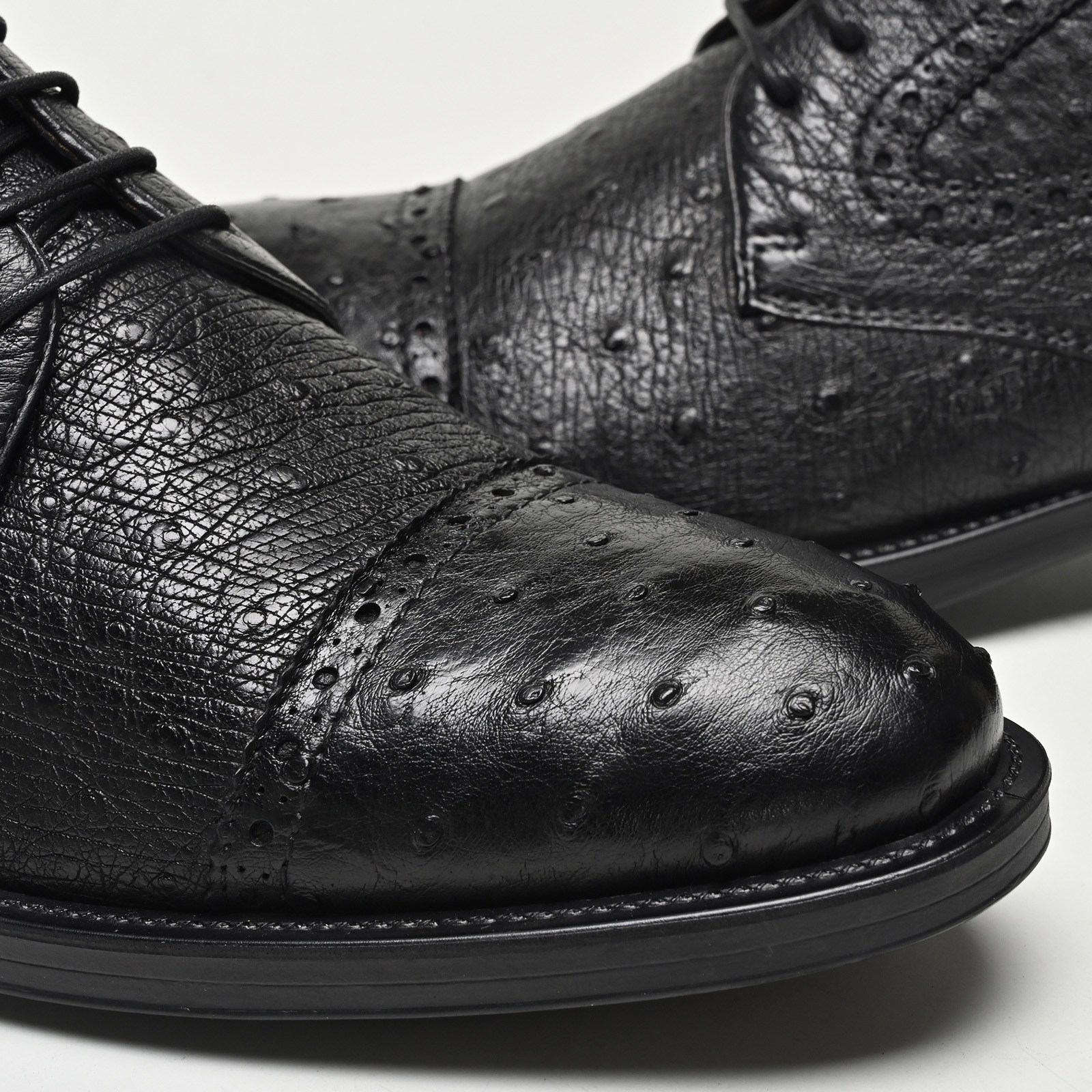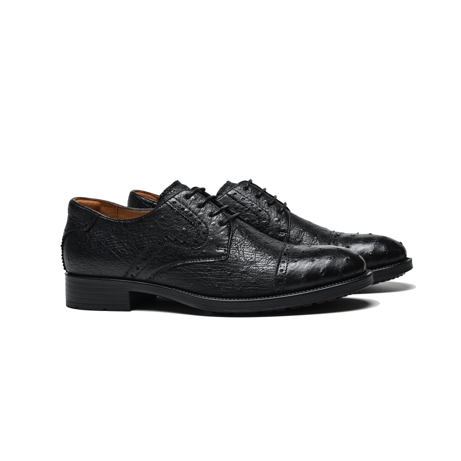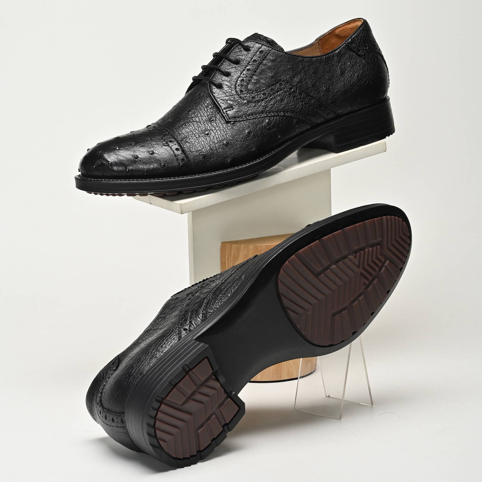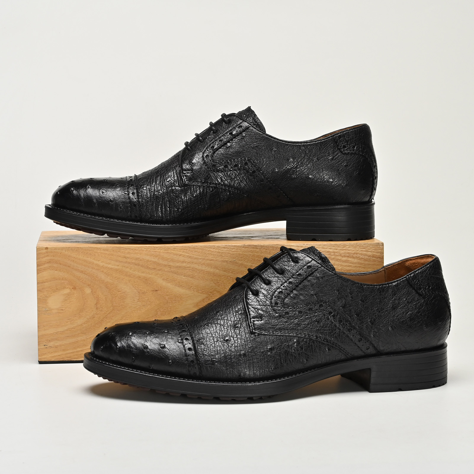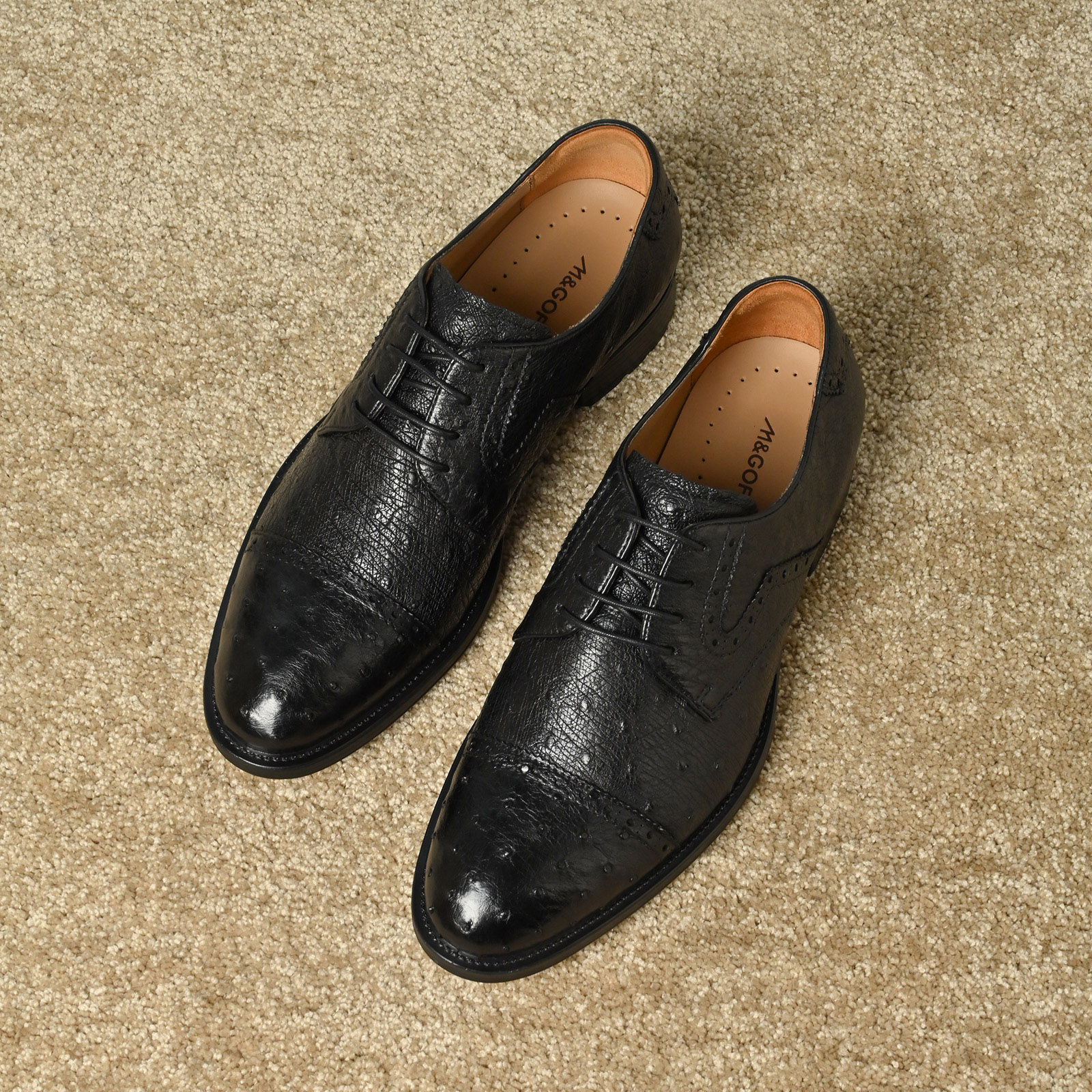 尊貴經典駝鳥皮英倫風(fēng)複古德比正裝男(nán)鞋M82302真皮男(nán)士系帶圓頭M82302