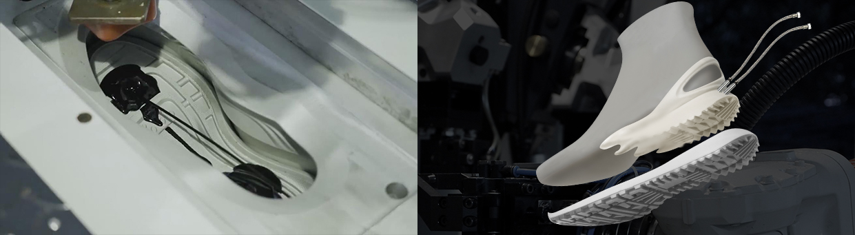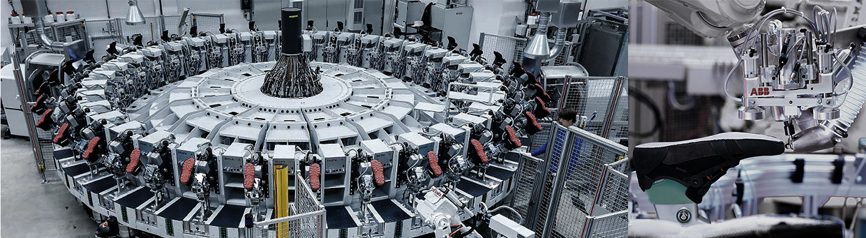 機(jī)器(qì)人(rén)制(zhì)鞋生(shēng)産線,通(tōng)過自(zì)動化(huà)控制(zhì)編程,制(zhì)↑鞋精度可(kě)達微(wēi)米級,比傳統勞動密集型,工(gōng)藝精度高(gāo),生(shēng)産過程數(sβhù)據化(huà)、智能(néng)化(huà),鞋子(zǐ)工(gōng)藝與品質更出色。 |
